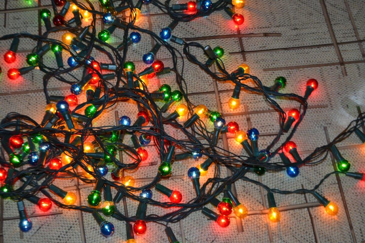Первичный осмотр выявил две разбитые лампочки и оборванный провод. Как оказалось, это не все сюрпризы, но об этом потом. Я люблю эту гирлянду, она довольно длинная и красивая. В прошлом году я украсил ей шторы в нашей с женой комнате. Жалко выбрасывать, но и за лампочками ехать лень.