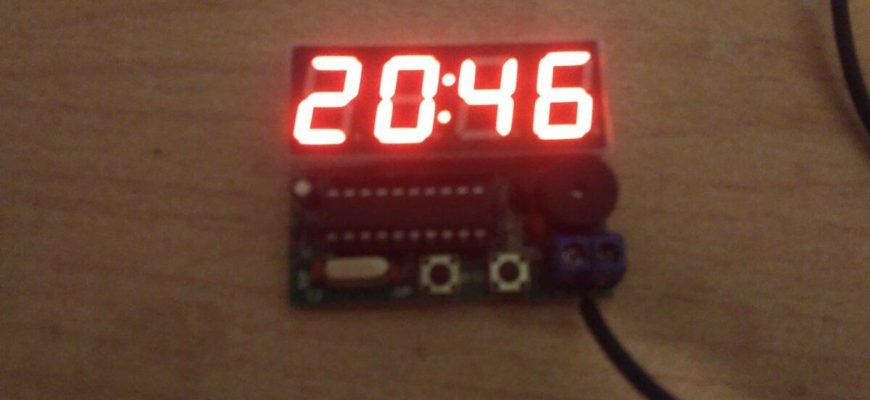 Данная модель идет уже без термометра, без датчика света, без батарейки, которая бы обеспечила сохранение настроек, а также и без корпуса. Такие часы можно применить только там, где есть постоянный источник питания. Корпус можно изготовить из коробки от аудиокасеты.